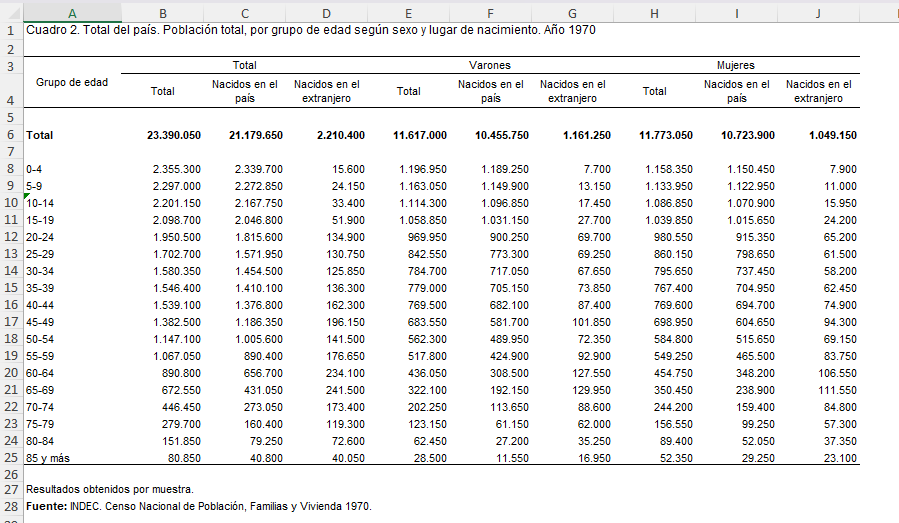 Historical census results for 1970, 1980, 1991, 2001, 2010 and 2022 in Argentina are available in different formats through physical books, PDFs, excel files, and REDATAM outputs, without having a unified system or format that would allow working with the data from these six census periods as a database.